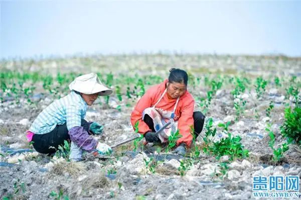黔南州龙里团结村村民正在赶春耕、种茶苗