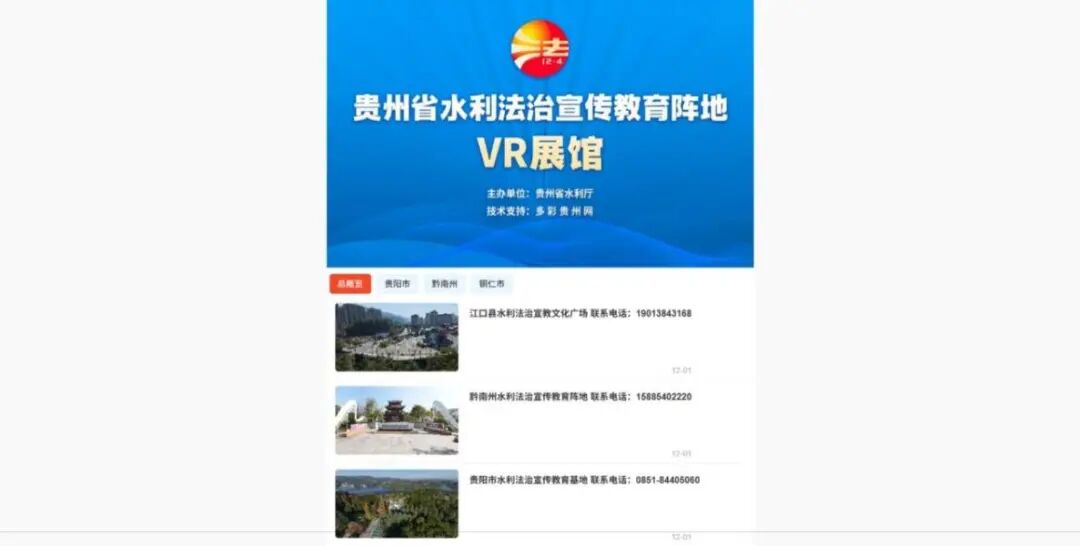 2025年12月4日,由贵州省水利厅主办,多彩贵州网提供技术支持的“贵州省水利法治宣传教育阵地VR展馆”正式上线。标志着无需排队,不必远行,就能沉浸式打卡、数智化体验贵州水利法治宣传教育阵地魅力和贵州水文化脉络。