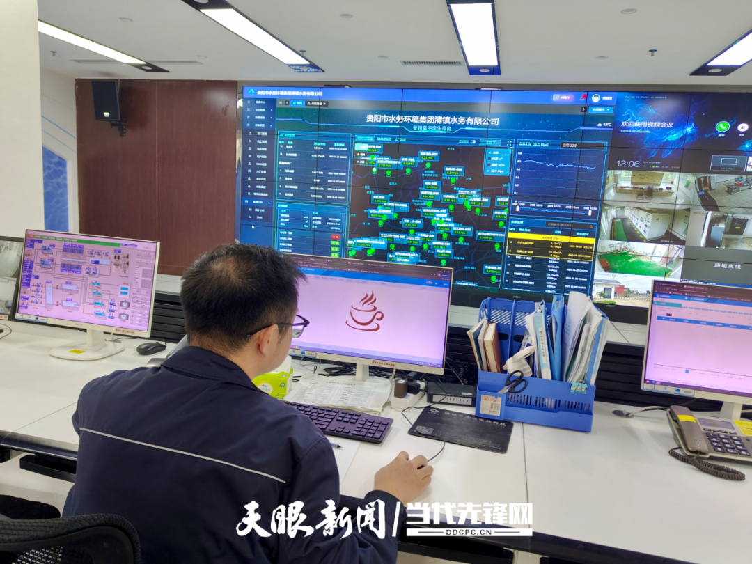 在贵阳市水务集团清镇水务有限公司二楼,“管网数字孪生平台”实时监测全市4座大型水厂及泵站、管网等数据,监测设备覆盖清镇整个市区及农村供水重要节点位置。移动手中的鼠标,即可线上查看指定区域供水情况。