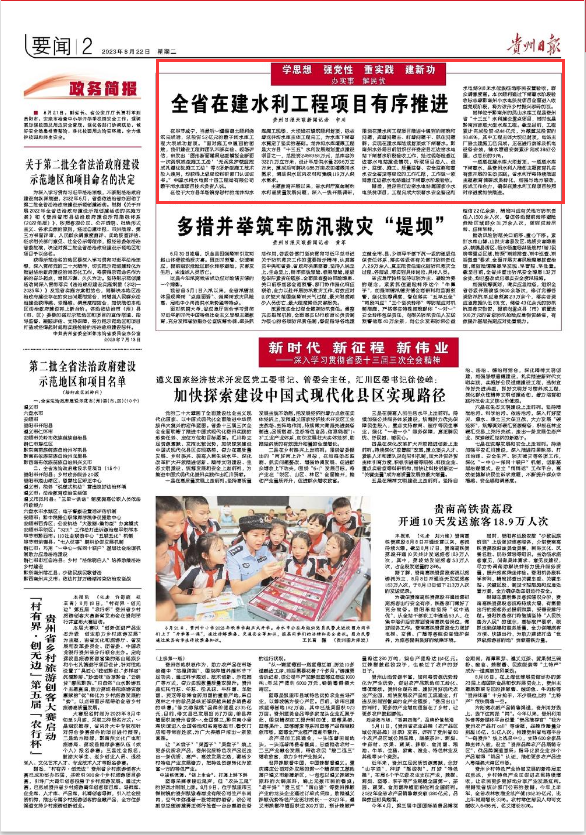 一座座在建水库大坝封顶,一座座水库下闸蓄水,是贵州水利人推动主题教育扎实有效开展的生动实践。省水利厅将持续推进主题教育调研成果转化,加强与地方联动,形成工作合力,确保在建水利工程项目按照时序进度加快推进。