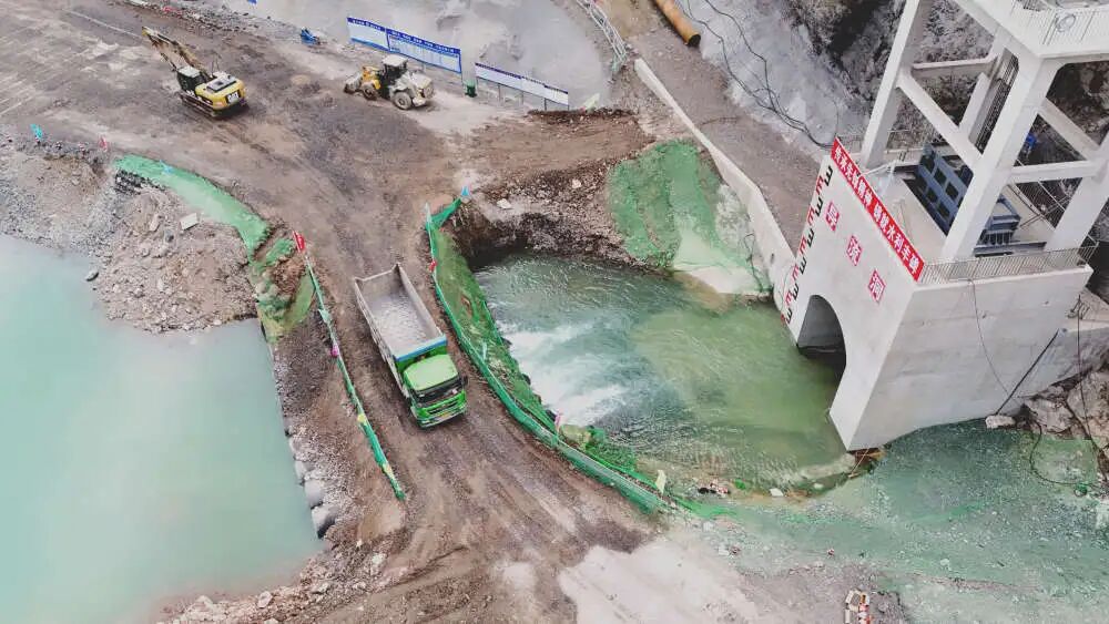 下午3时,满载石块、石渣料的自卸车在挖掘机的配合下,有序地将石块倾卸到河中进行回填,推土机、压路机在现场来回穿梭,对围堰进行加固。随着围堰“龙口”越来越窄,河水顺利通过导流洞下泄,截流取得圆满成功。