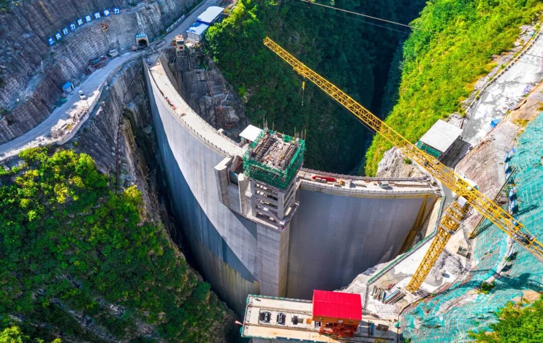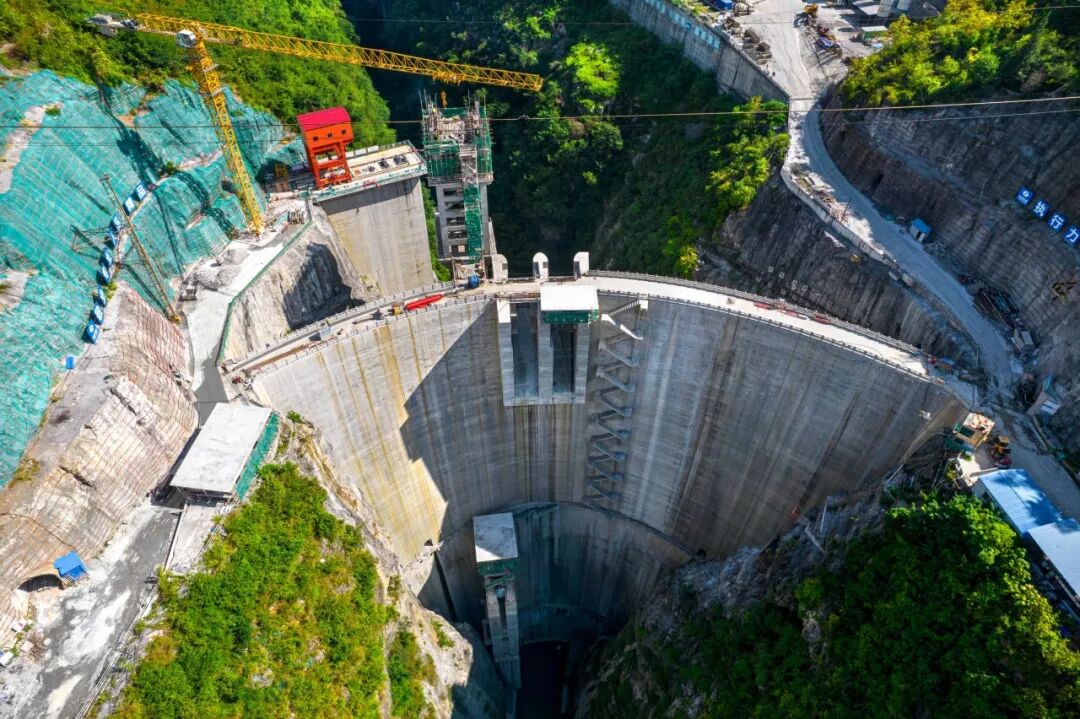 据悉,黔西凹水河水库大坝为C9025全坝外掺氧化镁碾压混凝土抛物线双曲拱坝,最大坝高153米,坝顶宽6米,最大底宽24米,属薄拱坝。工程总投资约12.74亿元,总库容4669万立方米,年设计供水量4275万立方米,主要解决黔西城区供水及周边2300余亩农田灌溉问题。