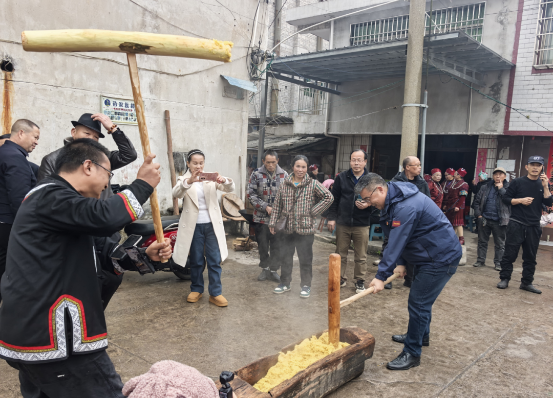 直播现场,第一书记高志平挽起袖子抡起木槌,与村民默契配合捶打糯小米糍粑,热气腾腾的糍粑勾起网友味蕾,评论区瞬间刷屏;驻村选调生祝瑜化身“主播助理”,清亮嗓音吆喝产品、细致回应网友提问,用真诚拉近乡土好物与消费者的距离。