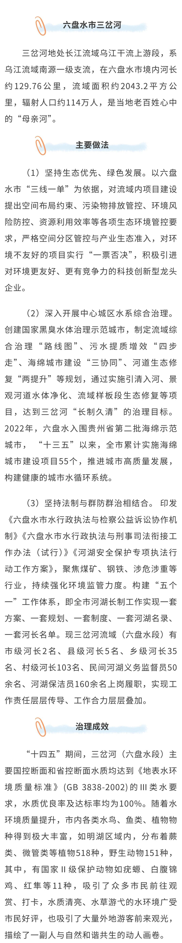 为深入贯彻落实习近平生态文明思想,按照国家关于推进美丽中国建设的决策部署以及省委、省政府有关工作要求,贵州省生态环境厅、贵州省水利厅按照《贵州省美丽幸福河湖评定管理办法(试行)》开展了2025年度贵州省美丽幸福河湖评定工作。经专家审核和公开征求意见,将六盘水市三岔河等9条(个)河(湖)评定为2025年度贵州省美丽幸福河湖优秀案例。