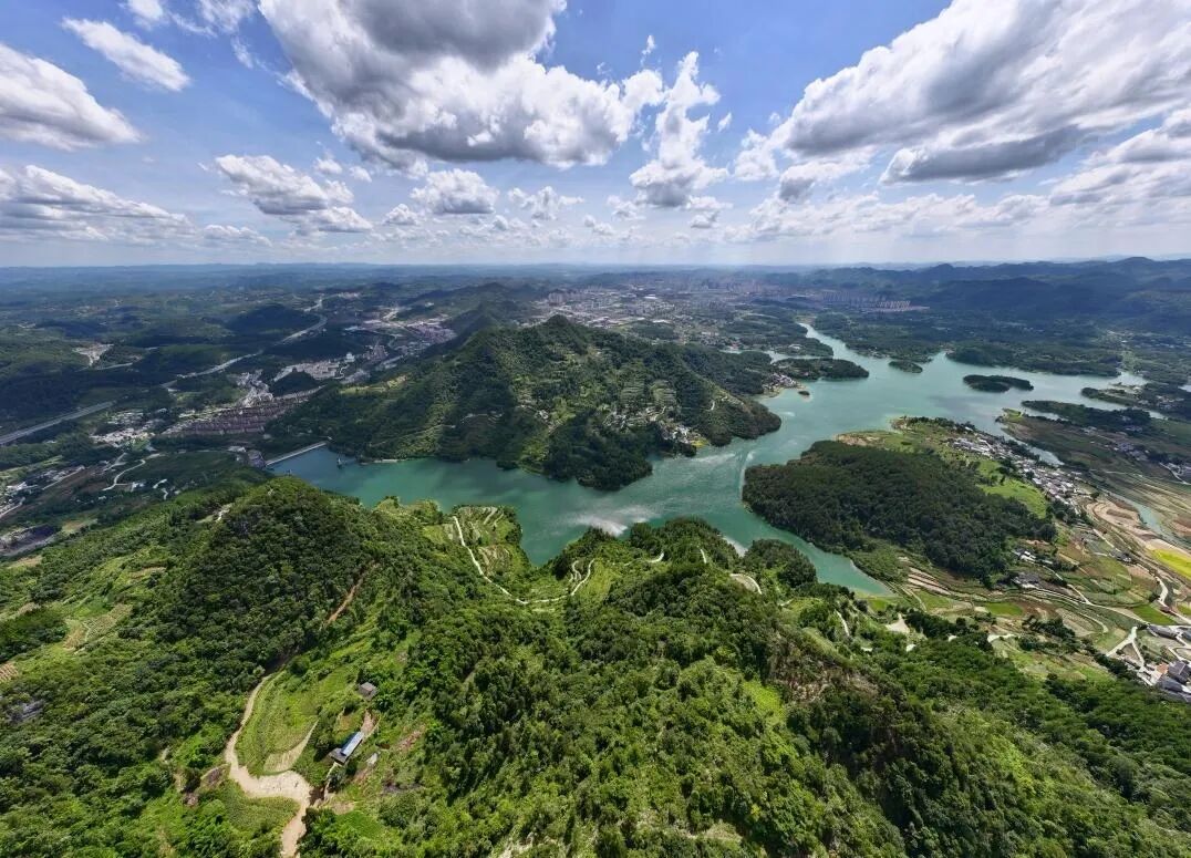 驱车行驶在遵义市新蒲新区的山间公路上,远远便望见一片澄澈碧水镶嵌在连绵苍翠之中,山水相依、波光粼粼,宛如一幅浑然天成的生态画卷。