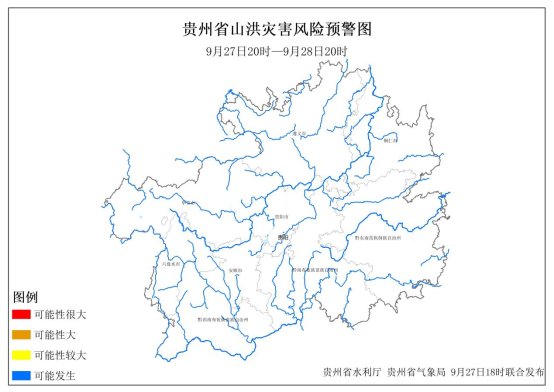 贵州省水利厅、贵州省气象局2025年9月27日18时联合发布山洪灾害风险预警: